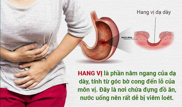 Dạ dày được chia thành nhiều vị trí bắt đầu từ tâm vị, phình vị, bờ cong lớn, thân vị, bờ cong nhỏ sau đó mới đến hang vị và vị trí cuối cùng chính là môn vị. Như vậy, có thể nói viêm hang vị dạ dày là tình trạng tổn thương lớp niêm mạc dạ dày ở vị trí gần cuối dạ dày, trước phần môn vị. Viêm hang vị dạ dày thường được biểu hiện bằng những cơn đau ở trên rốn. Tùy vào mức độ bệnh mà cơn đau sẽ biểu hiện dữ dội hay âm ỉ trong thời gian dài.